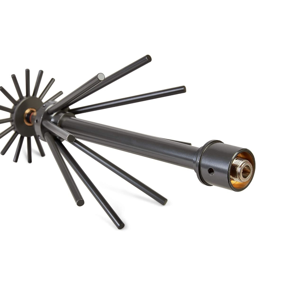 Der obere Teil besteht aus 16 horizontalen Elementen, während der untere Teil acht Radialen aufweist, die auf einem soliden Stummel montiert sind, der in einer N-Buchse endet.