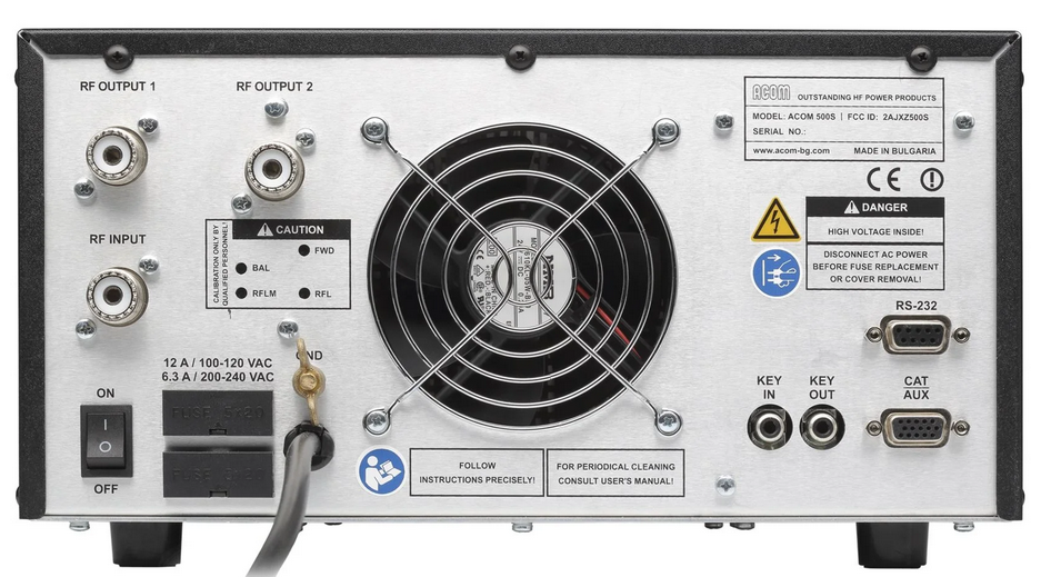 Acom verbaut bei der 500S ein Netzteil, welches von 100V bis 240V betrieben werden kann. Der Einschaltstrom wird automatisch begrenzt, das Netzteil bietet eine sehr gute Power Factor Correction (PFC). Zusammen mit der automatischen Anpassung an die Eingangsspannung ist so ein zuverlässiger Betrieb auch an Generatoren, bei schwankenden Versorgungsspannungen usw. möglich.