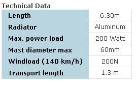 Die Antenne lässt sich leicht überall installieren, egal ob auf dem Hausdach, an der Deichsel des Wohnwagens oder auf einem Besenstiel am Urlaubs-QTH. Durch die schlanke Form ist die Antenne sehr unauffällig. Die Speisung der Antenne erfolgt über ein Koaxkabel mit beliebiger Länge, der antennenseitige Anschluss ist eine PL-Buchse. Der Strahler ist geerdet, so dass keine Probleme mit statischen Aufladungen auftreten. Die Antenne wiegt nur 4 Kilogramm und hat ein Packmaß von nur 1.3m, sie ist deshalb auch problemlos als flugtaugliches Urlaubsgepäck geeignet.
