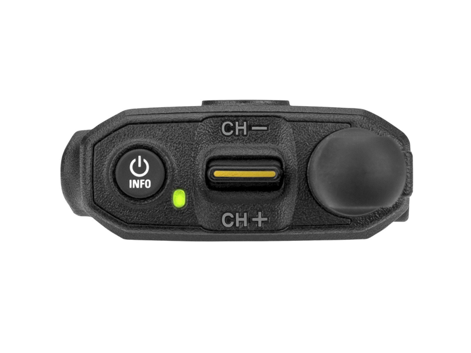 Das 2 zeilige OLED Display zeigt Kanal-, Funk- und Lautstärkedaten gestochen scharf an.
