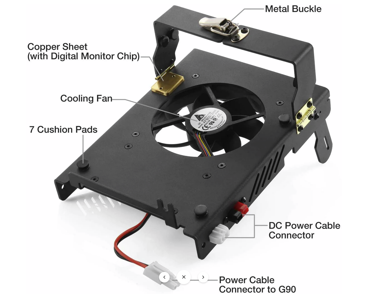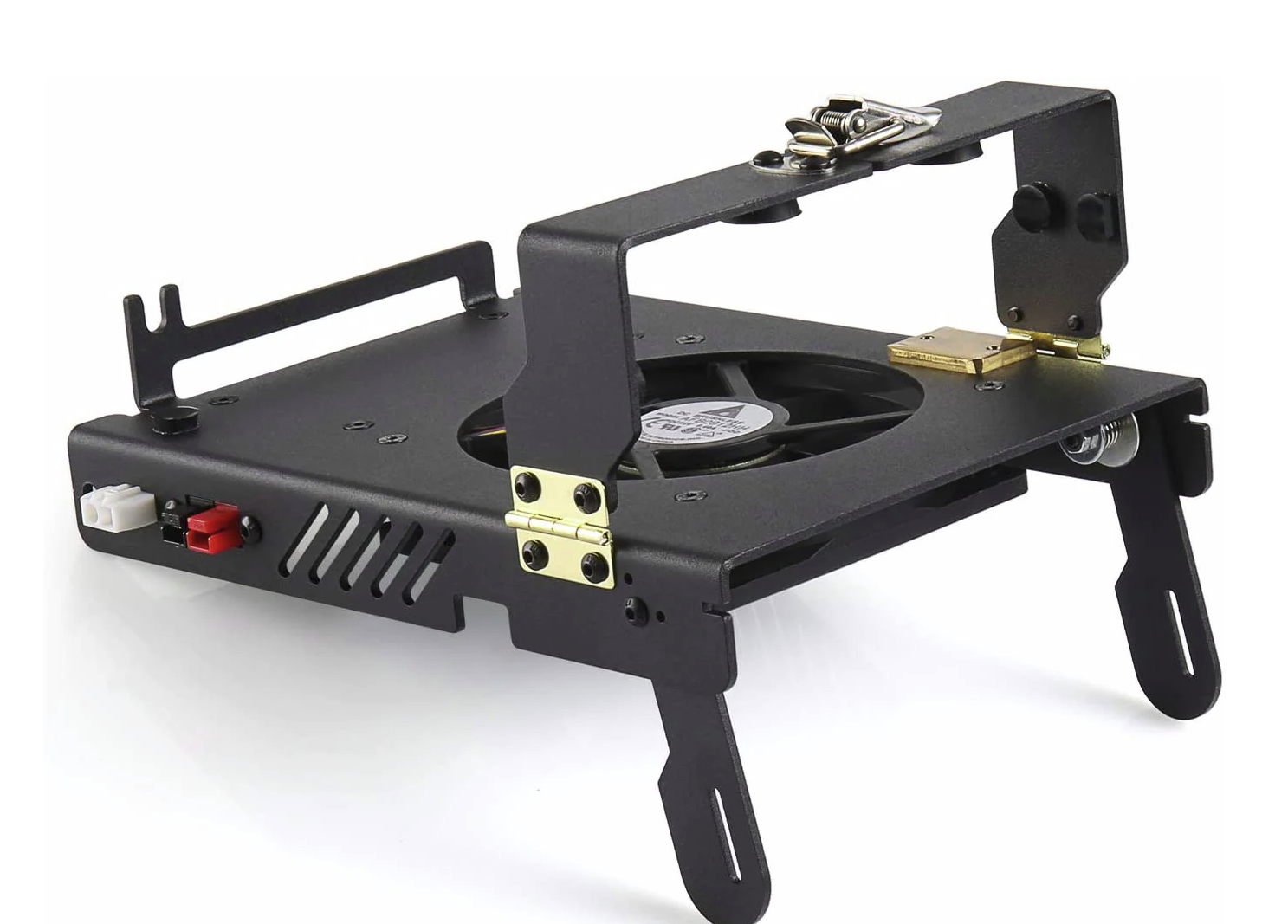 - Nachdem die Kühlhalterung an die Stromversorgung angeschlossen wurde, beginnt sich der Lüfter mit niedriger Drehzahl zu drehen, und liefert ein relativ geringes Luftvolumen.
